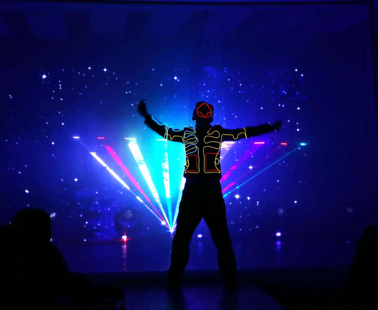 整場晚會由節(jié)目表演和歡樂抽獎交替進(jìn)行。節(jié)目表演部分形式多樣、精彩紛呈,不僅有專業(yè)的高水平表演團(tuán)隊加盟,更有員工及家屬傾情演繹:開場節(jié)目《4D激光舞》剛勁有力、時尚魅影、潮流炫動,在黑暗中跳出激情;人體懸浮魔術(shù)精彩刺激、扣人心弦;舞蹈“水墨江南”唯美大氣,引人入勝;花式調(diào)酒火光十色熱情奔放;銷售公司李雄演唱的《夢中的綠洲》高亢嘹亮,猶如天籟;銷售公司執(zhí)行總監(jiān)張玲的女兒劉玥含小朋友帶來的“寶貝模特秀”,古靈精怪,靈氣逼人;廣州代表處袁鵬宇演繹的街舞青春洋溢、動感十足,歌聲、掌聲、歡呼聲持續(xù)在會場蕩漾。